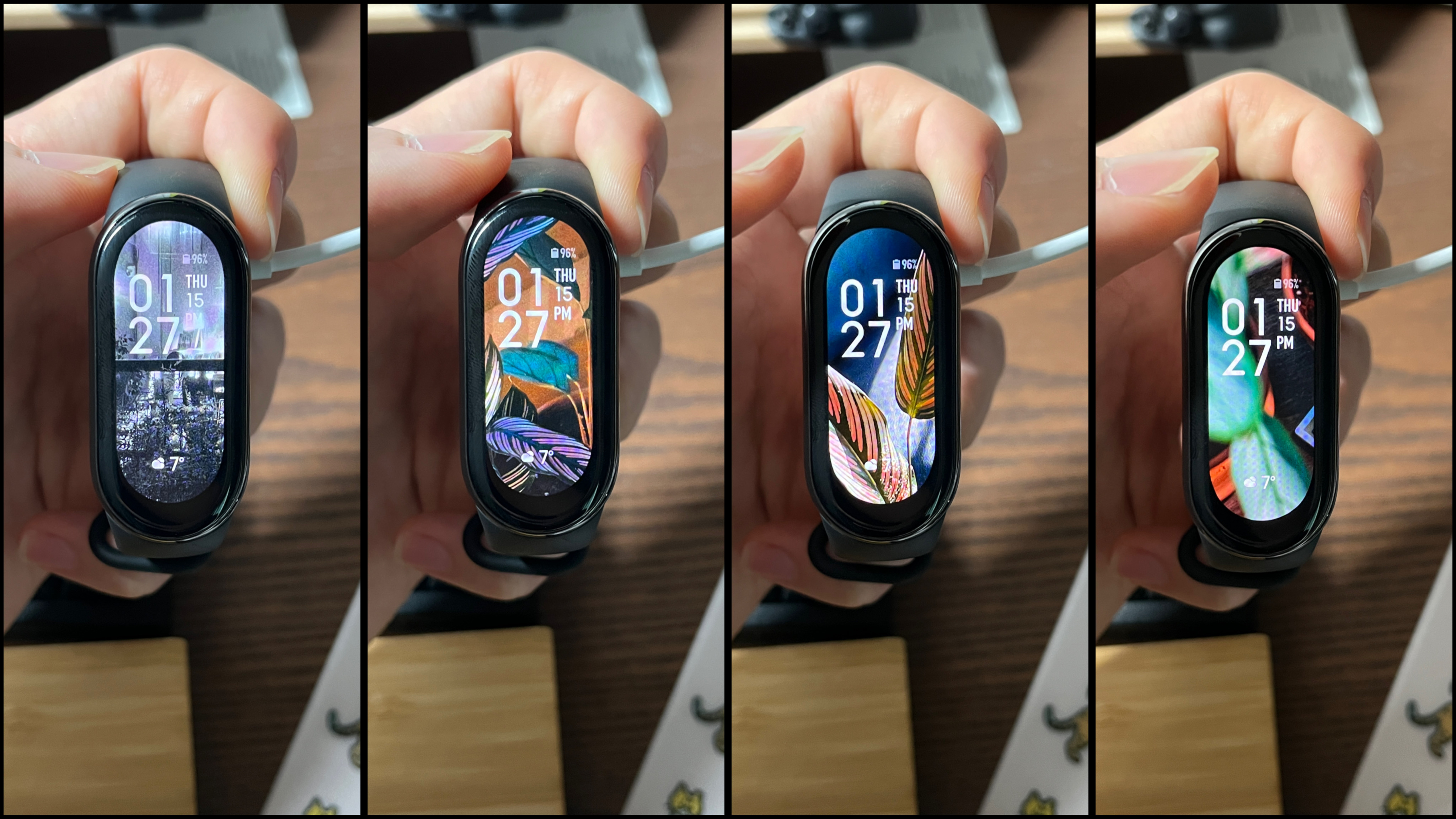 배터리가 오래가서 자주 충전할 필요가 없다. 갤럭시 워치4는 이틀이면 방전되어 수면 기록을 못할 때가 있었지만, 미밴드는 그런 일이 없다. 또 배경화면을 내 사진으로 간편히 설정할 수 있어 손목을 볼 때마다 기분이 좋다. 그리고 가볍다.